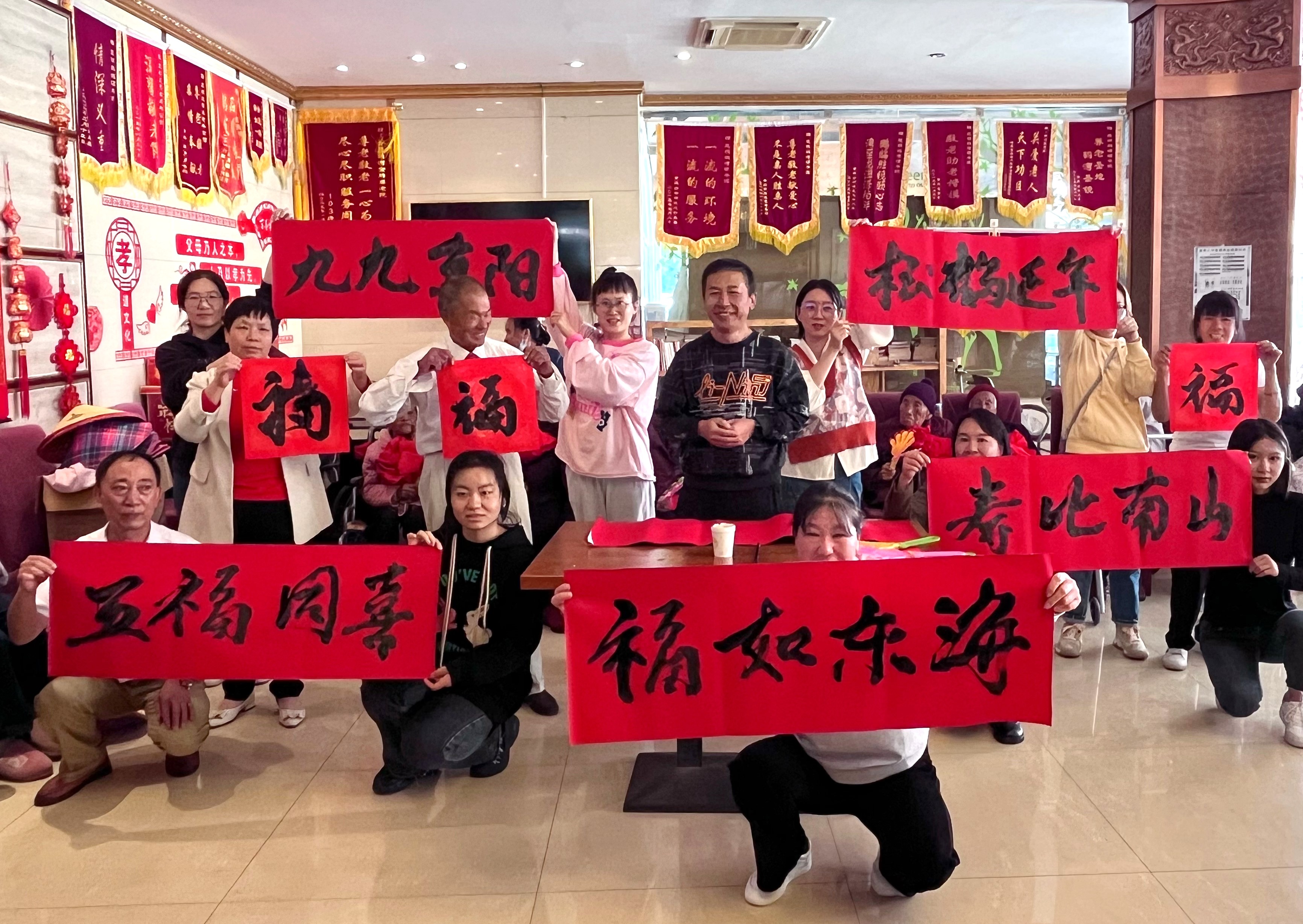 “重陽節(jié)啦,我們來看看您們”大家親切地對老人們問候道,并送上慰問品。黨員們圍在一起為10月份生日的老人集體慶生,一同唱起紅歌《沒有共產(chǎn)黨就沒有新中國》。隨后,書法愛好者葉老師現(xiàn)場揮毫潑墨,為老人寫毛筆字“送壽添?!?。老壽星們齊聚一堂,在一聲聲祝福聲中點起蠟燭、許下心愿,養(yǎng)老院中洋溢著滿滿的歡聲笑語。